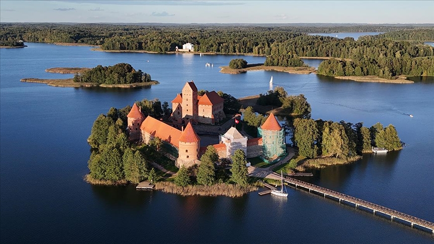 Прекрасната глетка на замокот Тракај во средината на езерото Галве во Тракај, Литванија, доловена од камерата на Агенција Анадолу.