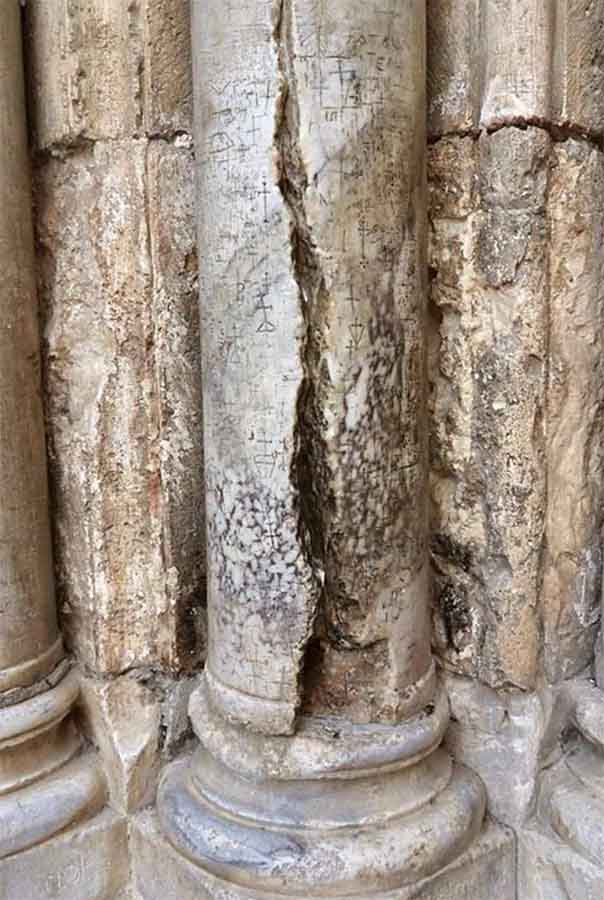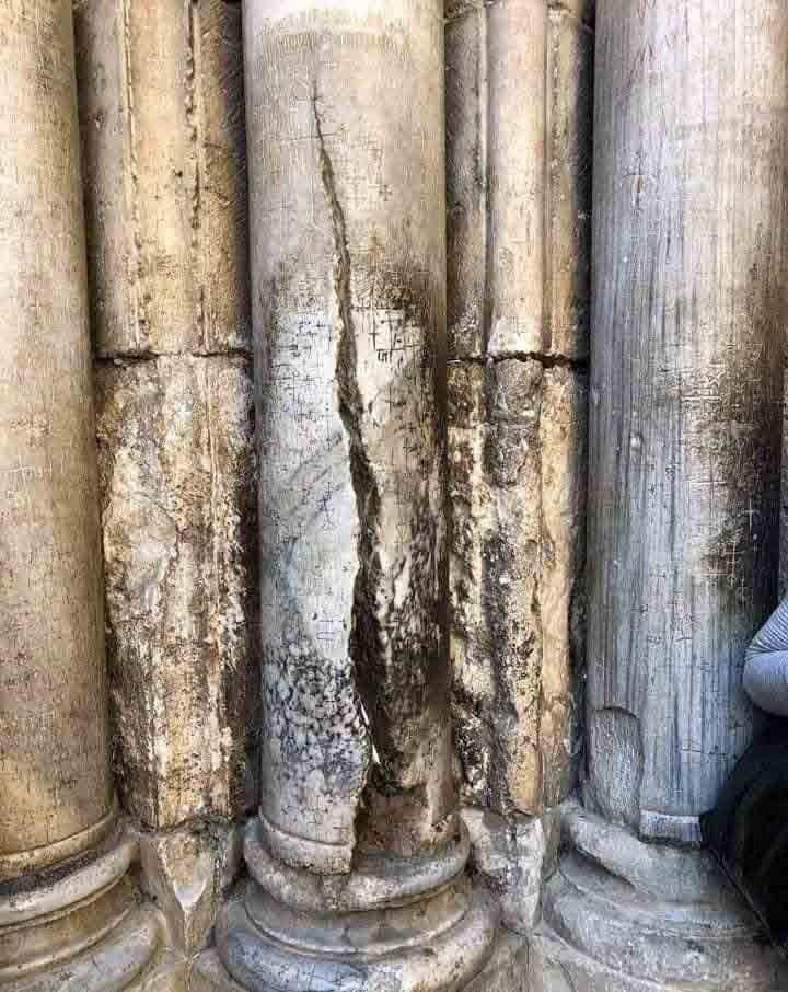 Во црквата на Воскресението во Ерусалим, ден денес стои оштетениот мермерен столб, низ кој помина Благодатниот Оган во далечната 1579 година и речиси го расцепи на половина.